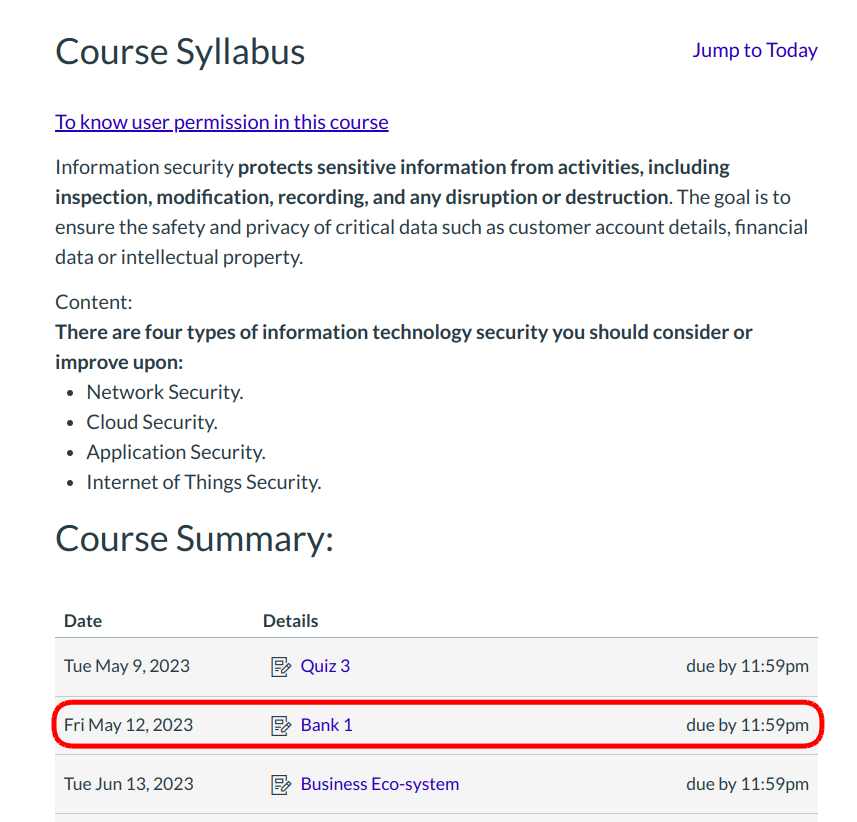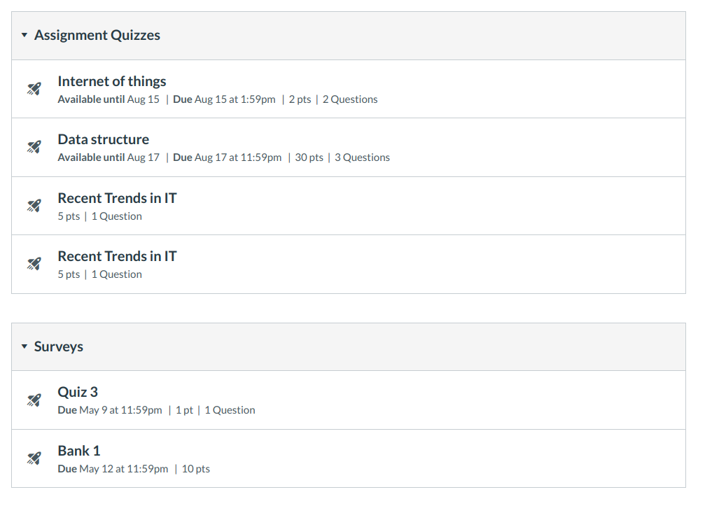 There are multiple ways to find Quizzes in Sublime LMS ™. You can find them by locating the Quizzes, Syllabus, Assignments, and/or Modules course navigation links in Sublime LMS ™.
