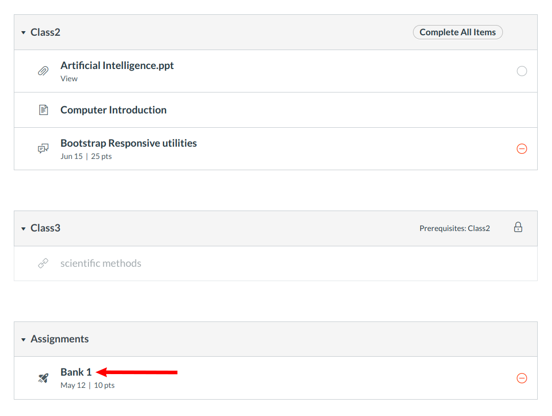 Modules are organized by instructors. Click the title of the quiz to open it.