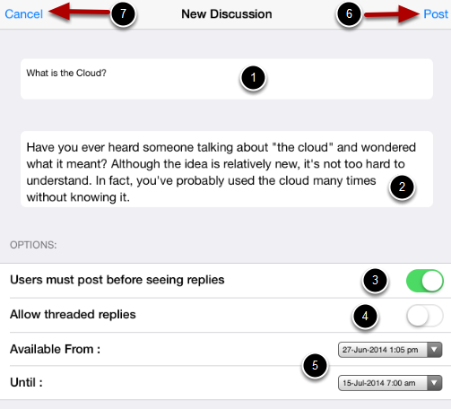 3. Require users to post to the discussion before viewing other replies by swiping the Users must post before seeing replies button.