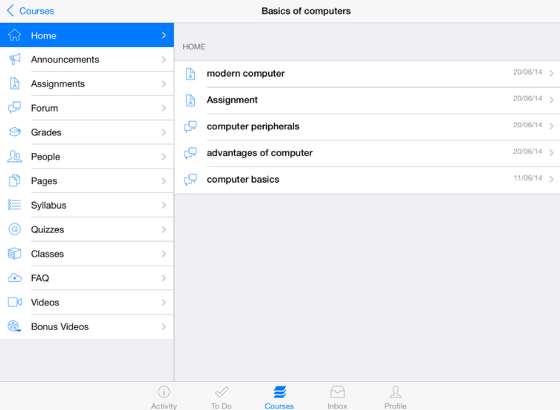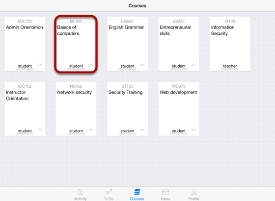 The Dashboard defaults to the Courses tab and it displays all the current courses.